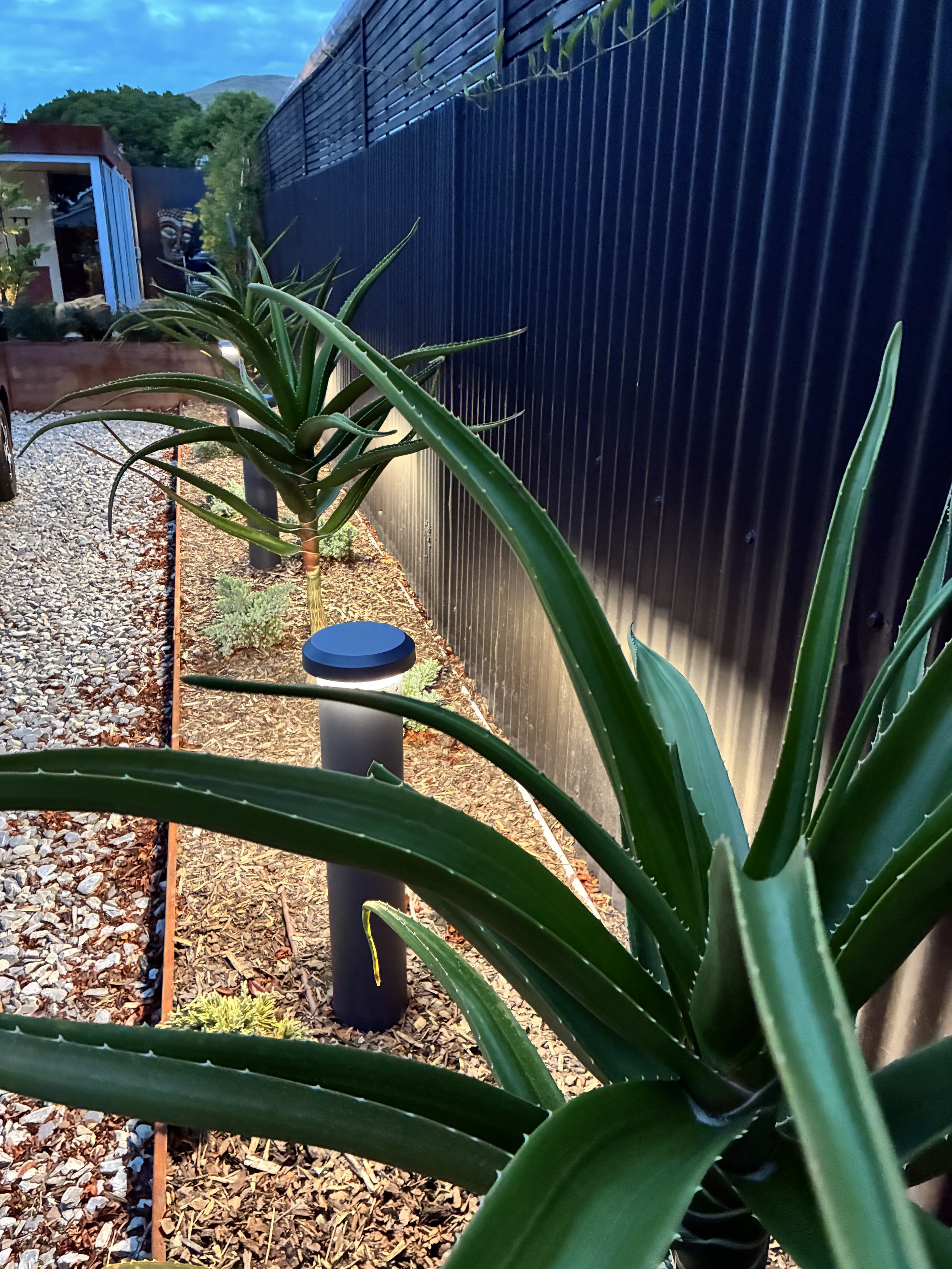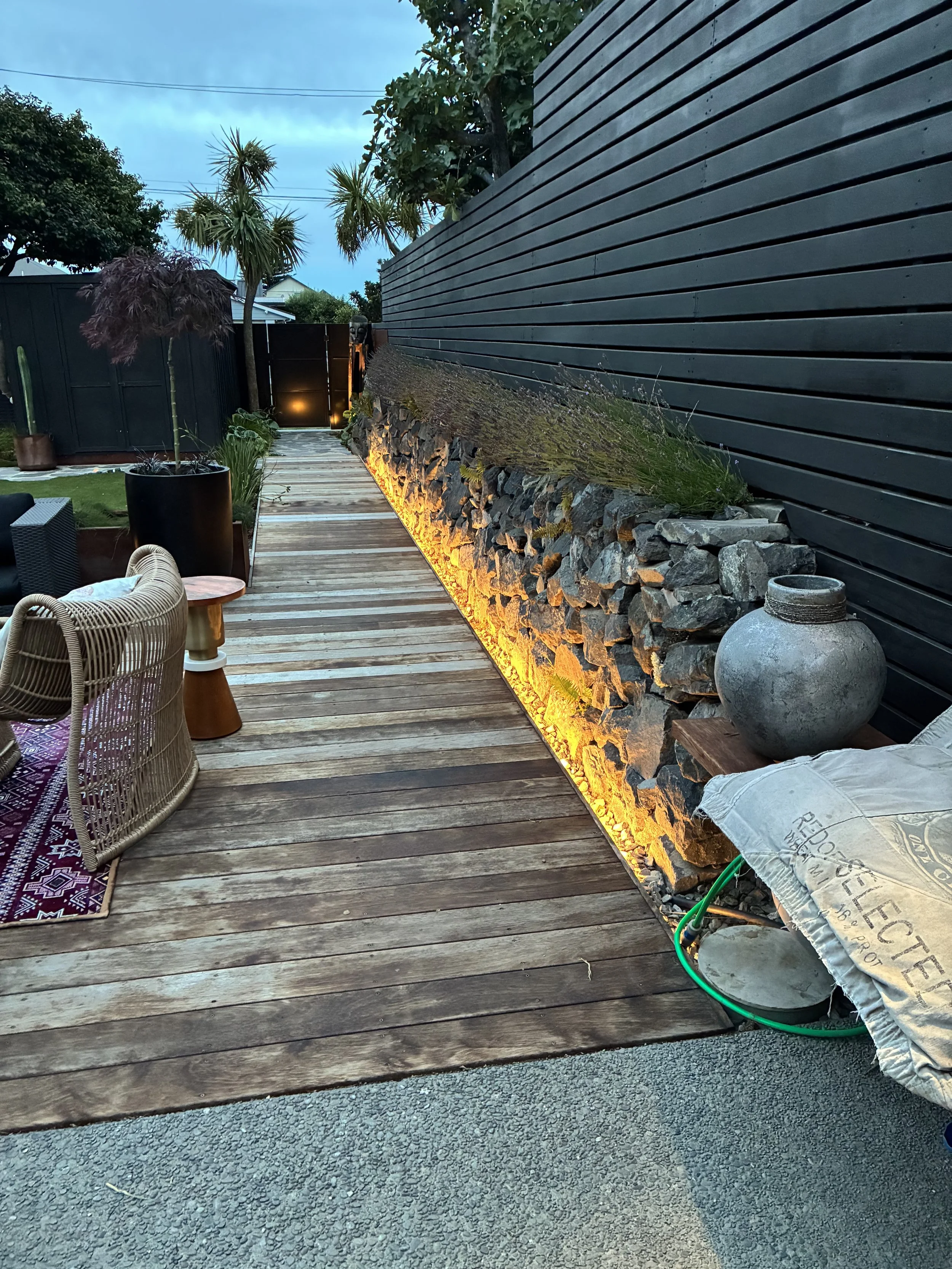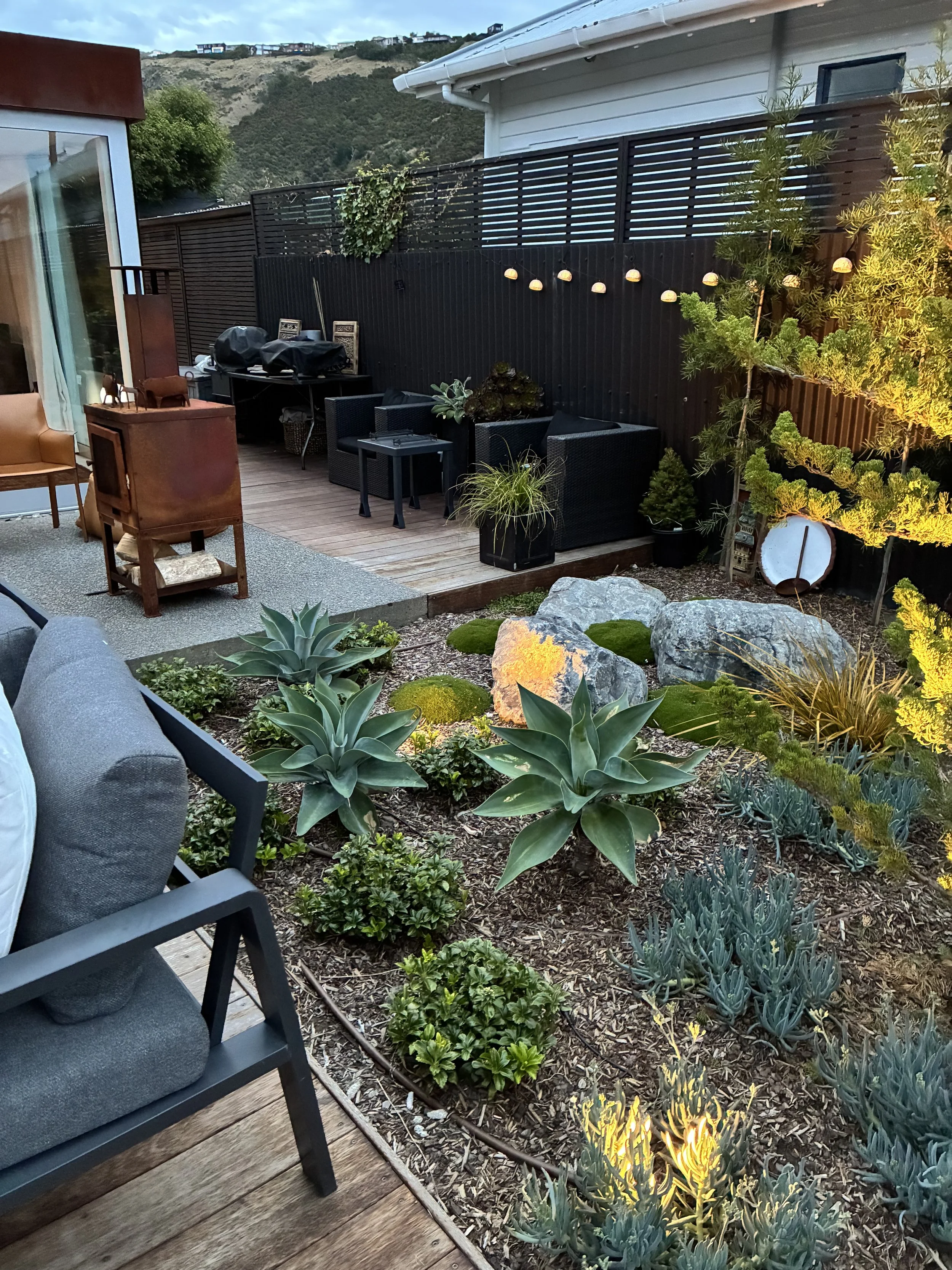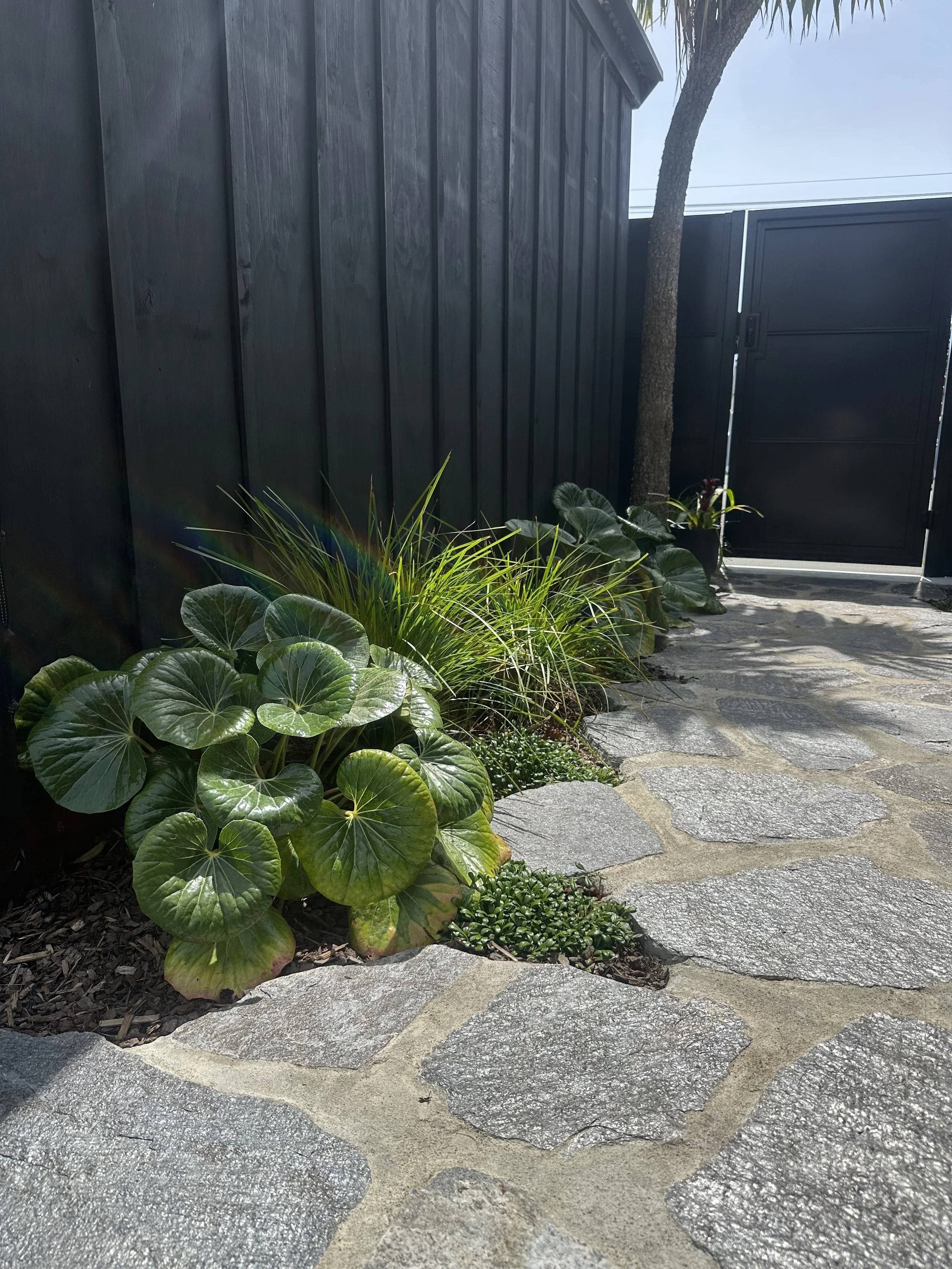 The brief was simple: elevate the landscaping to match the beautifully considered ‘tiny home’. The result is a contemporary courtyard garden that balances industrial materials with Japandi restraint and Mediterranean influences. Raw, honest materials- steel, stone and hardwood- define clean lines and purposeful zones, while a restrained planting palette prioritises form, texture, and structure. The outcome is a cohesive and refined outdoor space.